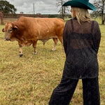 Turn heads in the Boot Stitch Set, where Western grit meets effortless style. Crafted in semi-sheer black mesh with a subtle boot-stitch inspired design, this two-piece set is equal parts edgy and elegant.