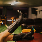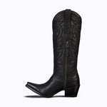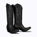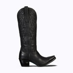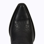 She's a timeless renegade. A jet black cowgirl boot right off the runway.