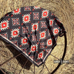 The Swift Creek Wild Rag brings bold, classic western style with a sharp modern edge. Its rich black base is covered in striking red, tan, and cream Aztec motifs that pop without overpowering- perfect for the cowgirl who likes a little drama in her wardrobe. The silky feel and generous size make it easy to tie, layer, and style however you please.