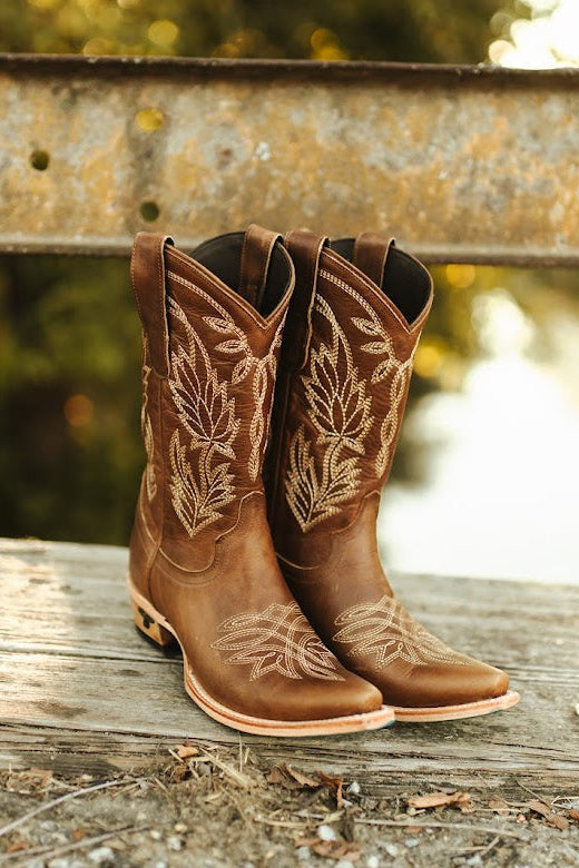 A neutral cowgirl boot right off the runway. Desert Clay cowgirl boots are a new closet staple.