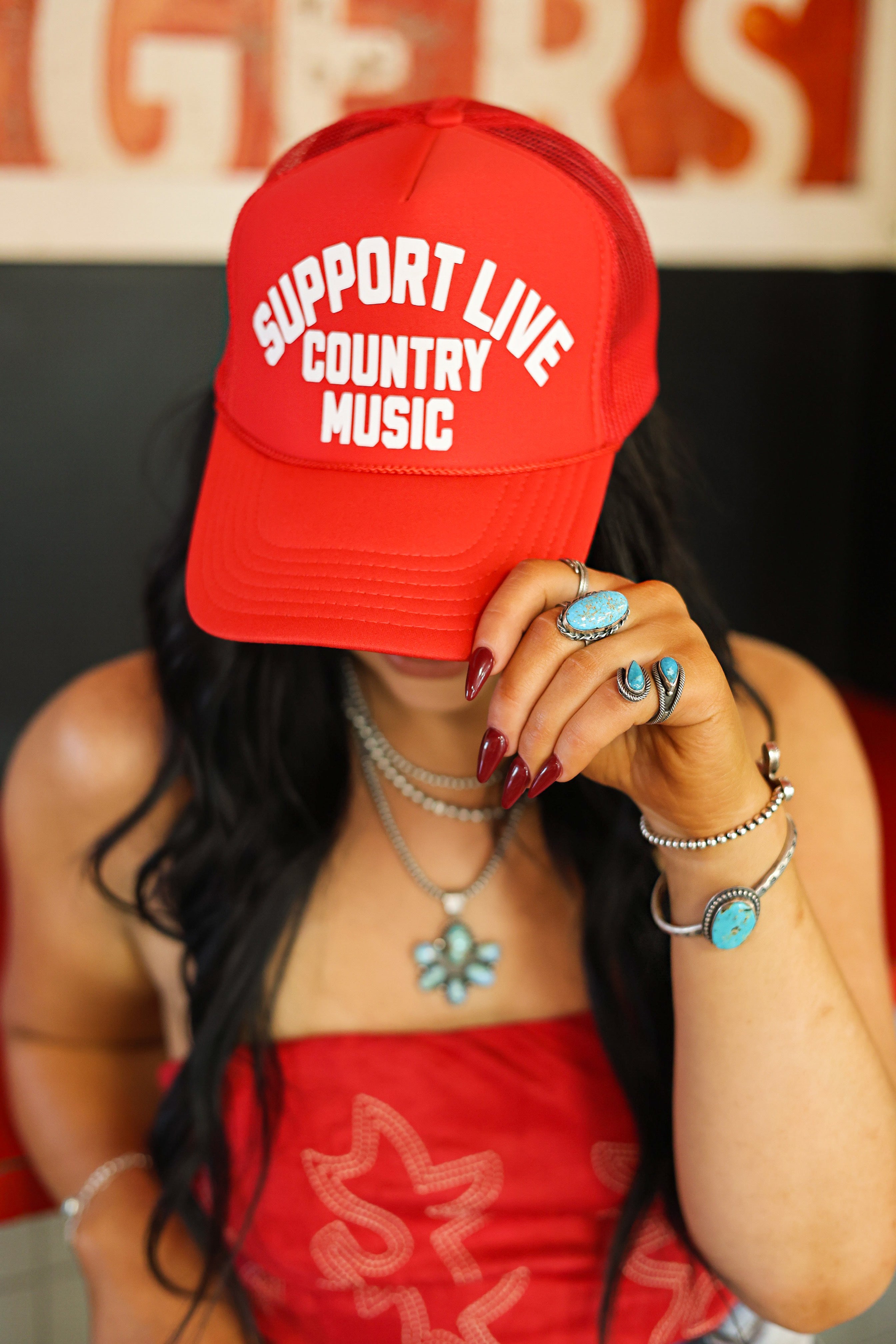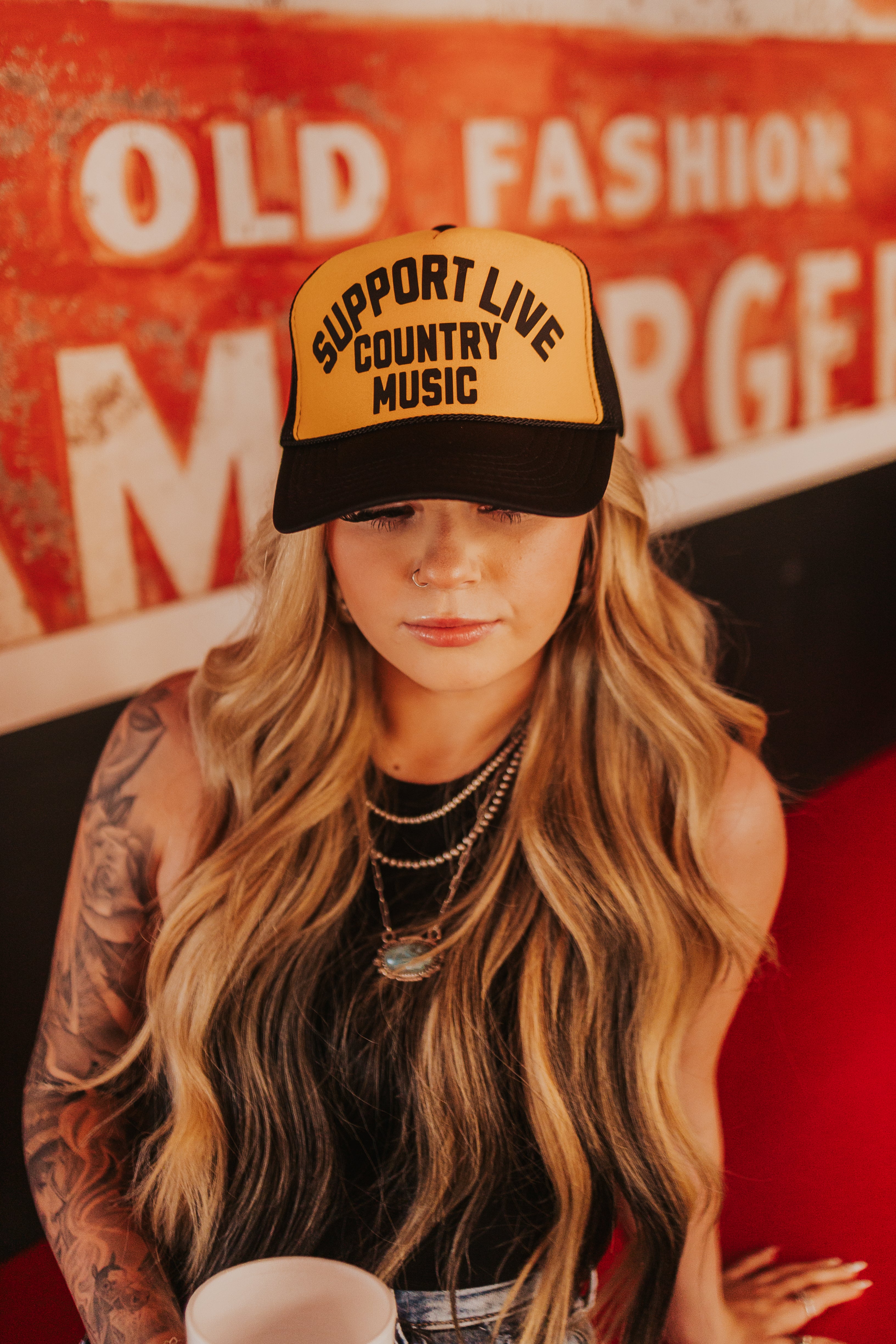 Support live country music in style. This western trucker hat is a must-have for concerts, festivals, and every cowgirl who lives for the sound of steel guitar.