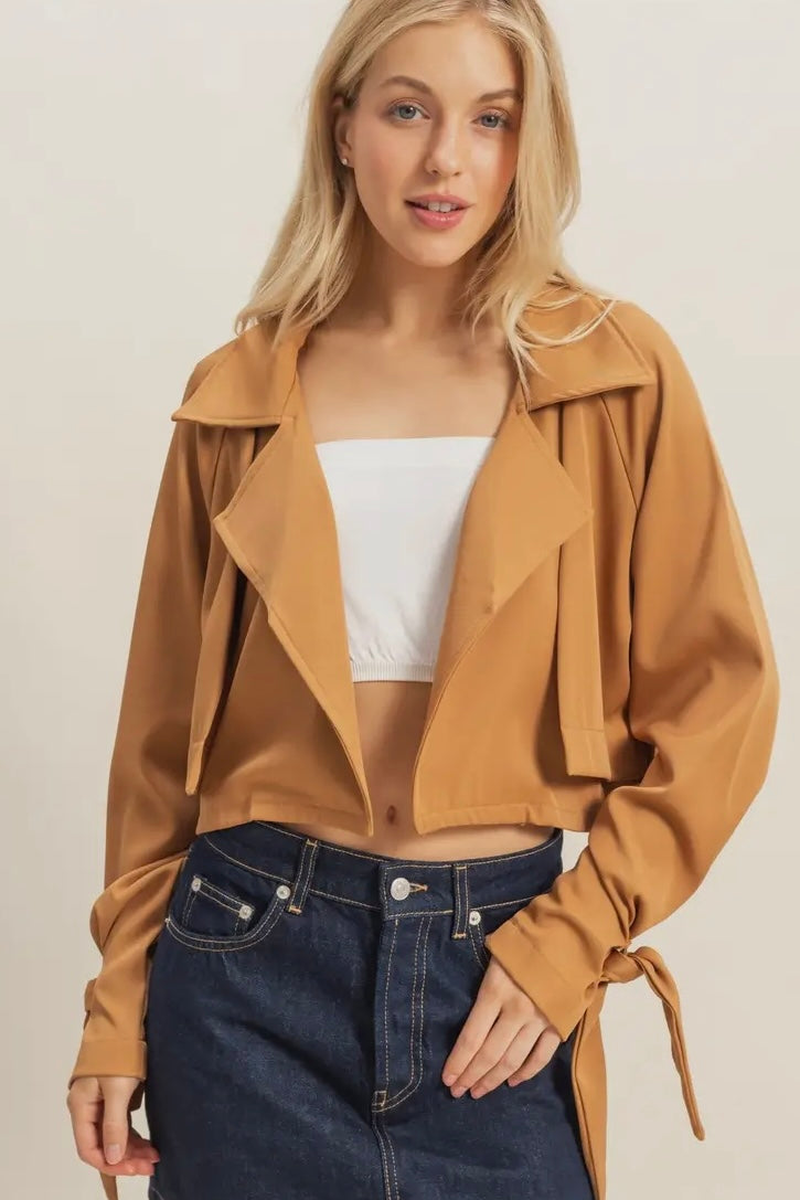 Board Room Cropped Trench Jacket - Camel