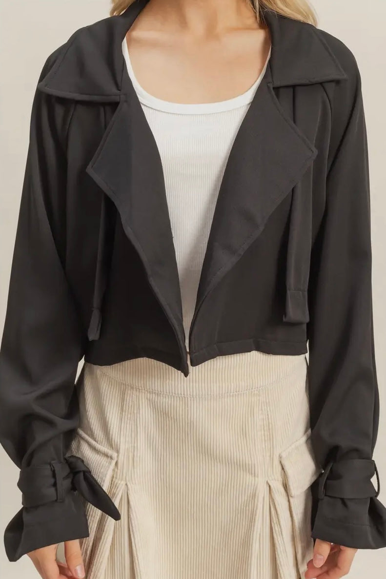Board Room Cropped Trench Jacket - Black