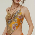 She walked in, ordered top-shelf, and left the bar tab for someone else. The Bar Tab Bandana Top is a bold little halter with a wild streak — featuring a silky scarf-style cut, paisley print, and a back tie fit that flatters every angle. Style it solo or layer it under a blazer or duster for that “I might ruin your life but you’ll enjoy it” energy.