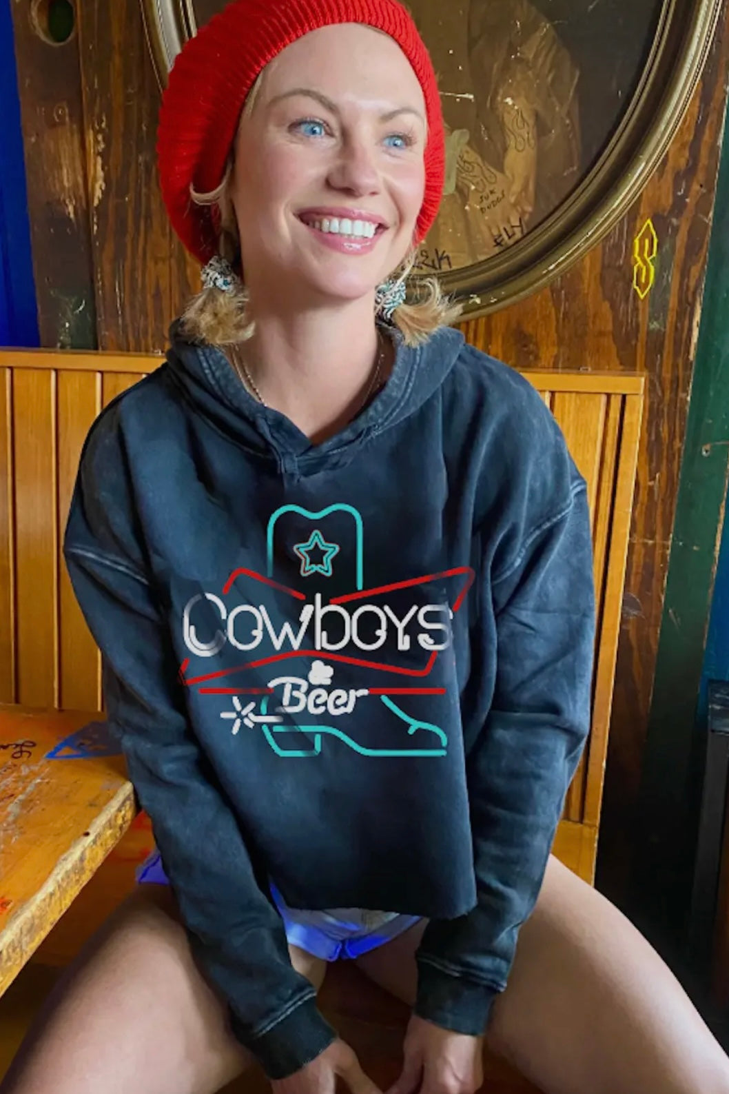 Cowboys & Beer Crop Hoodie