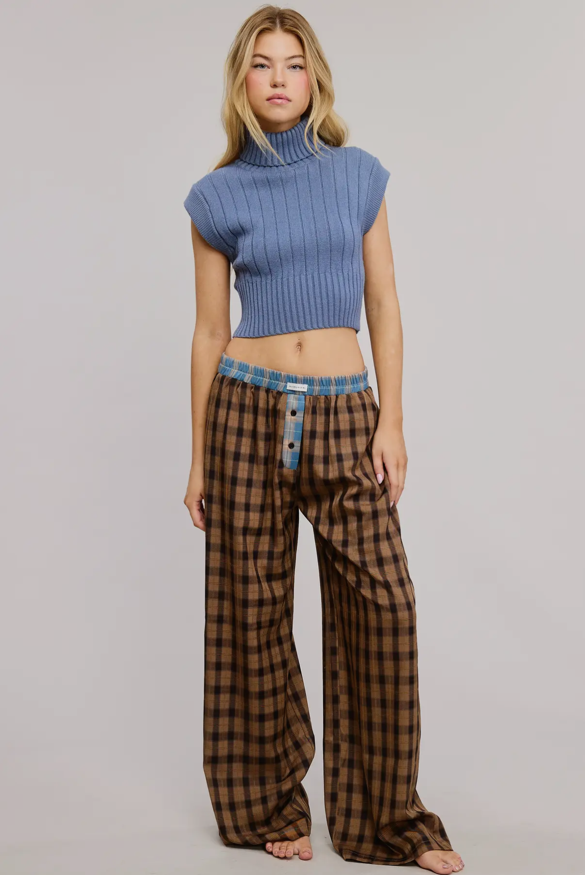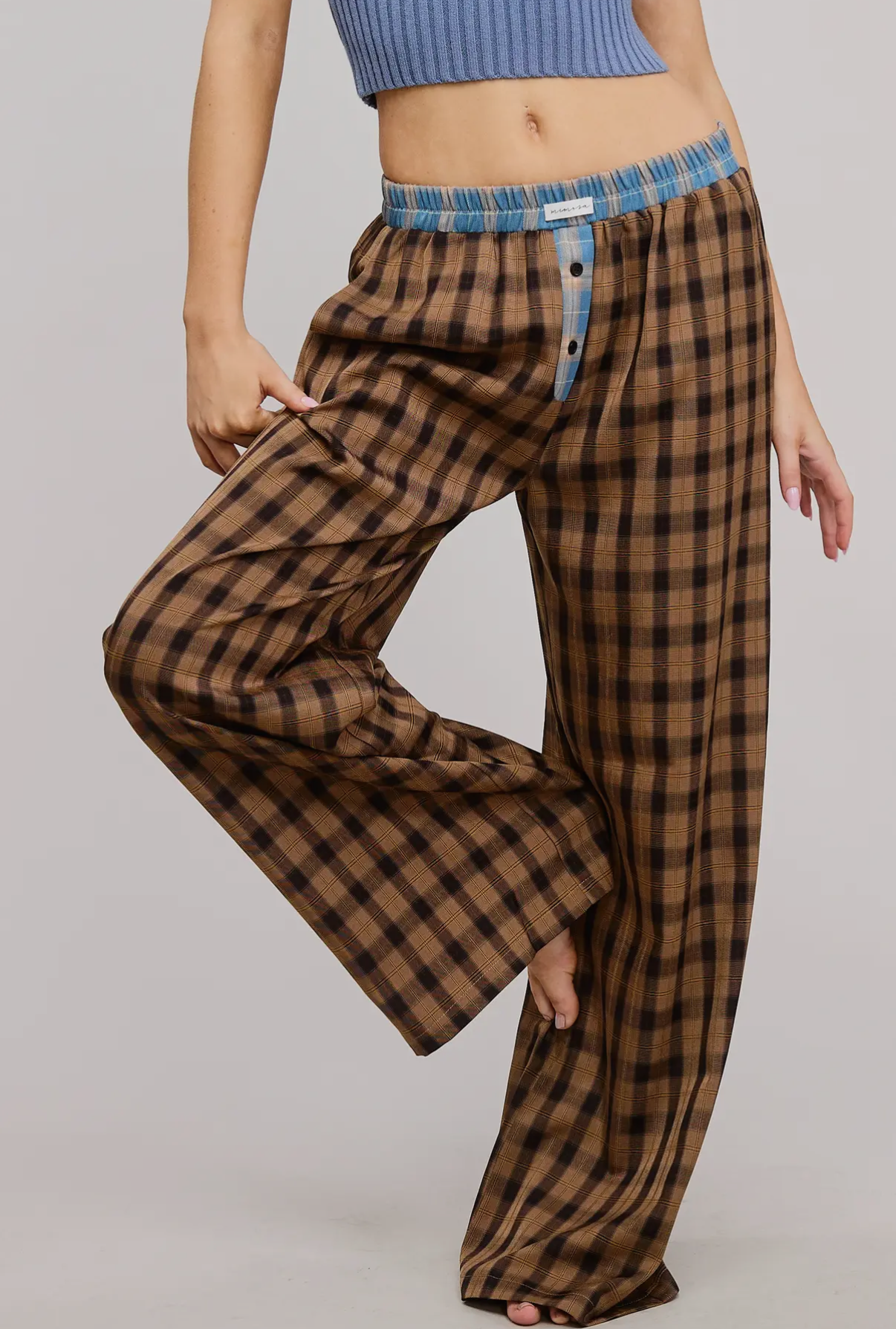 Meet the pants that feel like a lazy Sunday and look like a late-night run to the corner store with your situationship. The Double Wide Dream Boxer Pants bring that ultra-chill, Southern-loungewear energy — plaid pattern, wide-leg fit, and a contrast elastic waistband that gives major “borrowed-from-him-but-better” vibes.