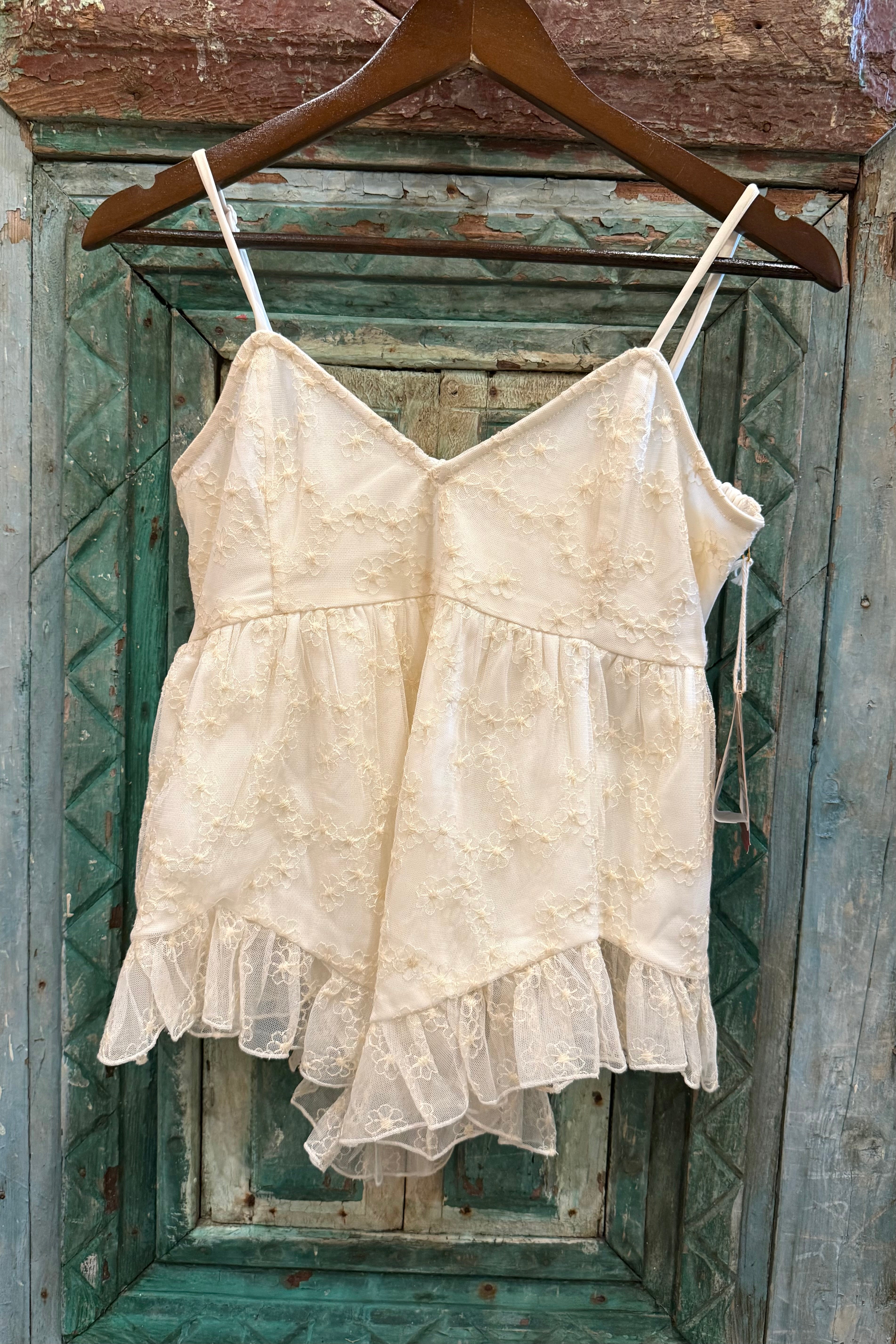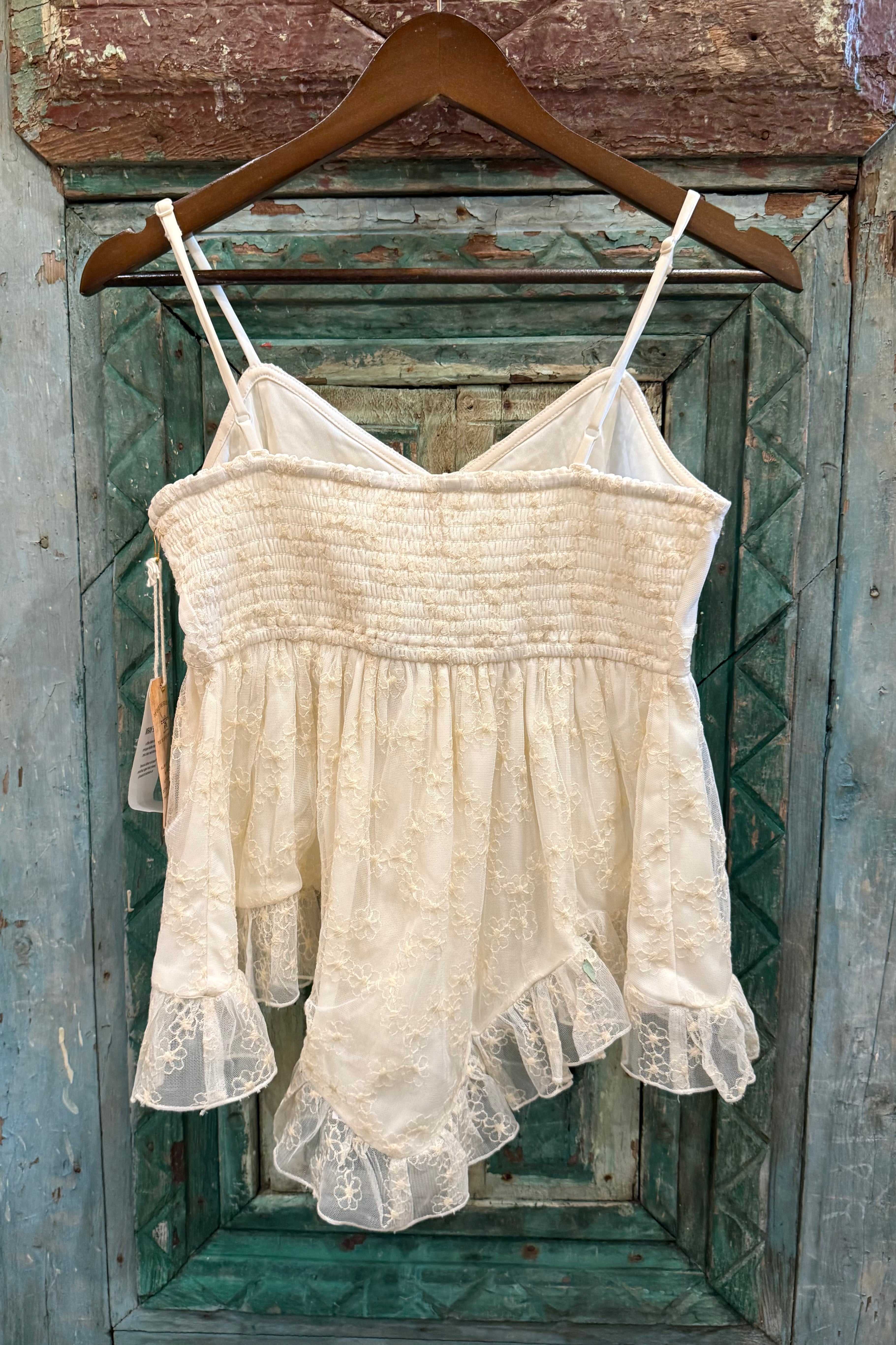 Soft but not delicate, the Amarillo Lace Tank Top is made for easy spring days and long nights. Designed with a breezy babydoll silhouette and delicate allover ivory lace, it features adjustable spaghetti straps and a smocked back that offers comfortable stretch and an effortless fit.