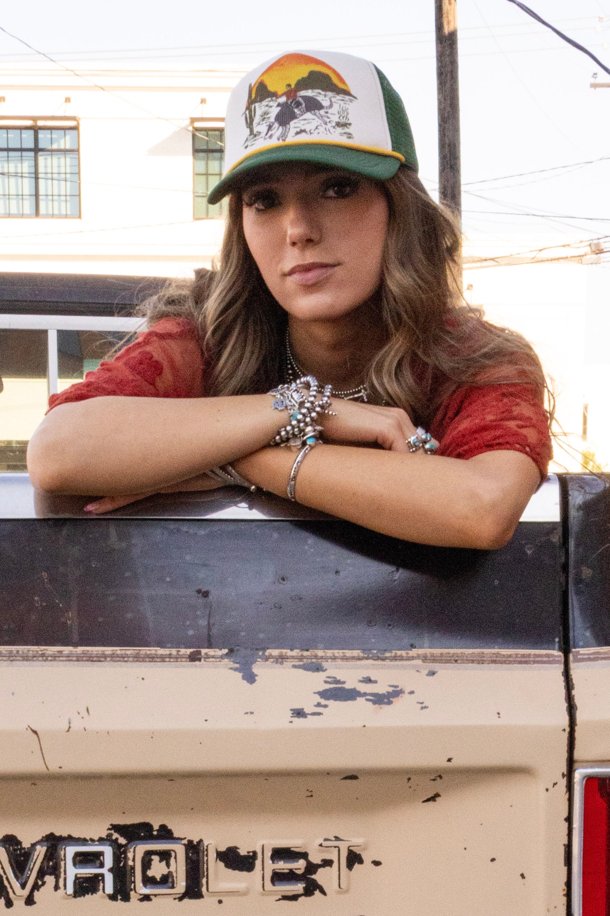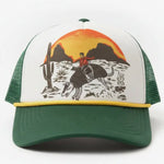 Designed with a classic foam front and breathable mesh back, it’s lightweight, easy to wear, and made for long days outside. The forest green bill and yellow rope detail give it that vintage trucker feel that pairs perfectly with denim, tees, and anything a little Western.