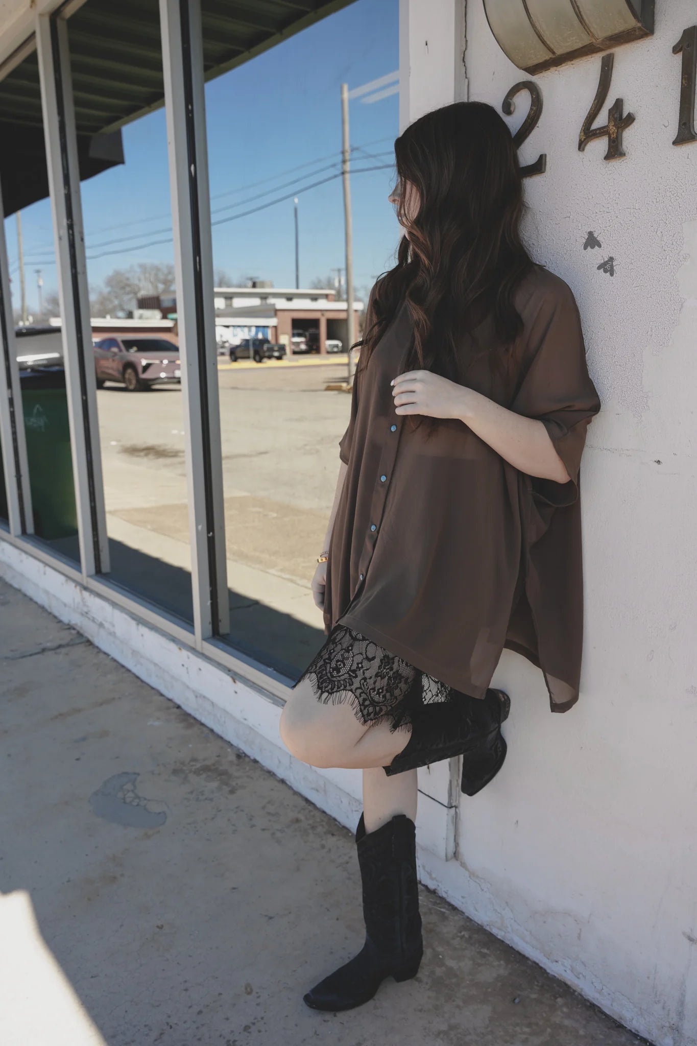 Lightweight and airy, it’s designed to be layered — over a lace slip, fitted tank, or bralette — giving you that effortless, styled look without feeling overdone. Easy to dress up, easy to throw on, and perfect for warm nights and cool entrances.