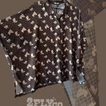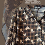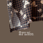 The Buckaroo Grid Top brings a retro Western twist to modern styling. Designed in a sheer, flowy fabric with an allover cowboy hat and horse print, this button-up is the perfect mix of grit and charm.