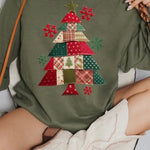 Cozy meets country Christmas. This olive green sweatshirt features a printed patchwork Christmas tree design that looks hand-stitched — without the bulk. It’s made on a super-soft unisex fleece, perfect for layering with denim or leggings. Style it with boots for tree-farm trips, holiday markets, or cozy nights at home.