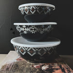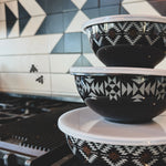 Grounded, graphic, and made for everyday use — the Mesa Bowl Set brings Southwestern style into the heart of your home. Featuring a bold black-and-white geometric pattern, these nesting bowls are equal parts functional and decorative. Perfect for serving, prepping, or simply styling on open shelves, Mesa adds a modern Western touch to any kitchen.