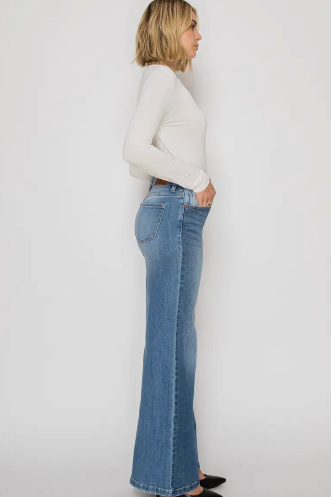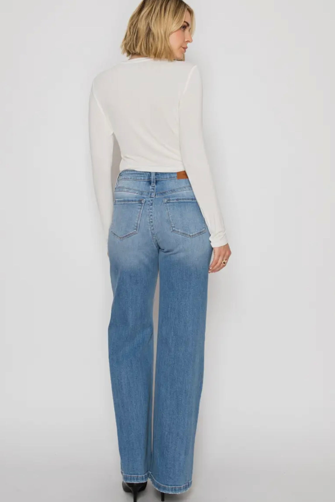 Meet the Freightline Wide Leg Jeans – Medium Wash, your new everyday denim with a flattering, structured fit. These jeans feature an ultra–high rise with hidden tummy control pockets that smooth and shape for a confident, comfortable fit. The vertical seam down the front elongates the legs while the medium stone wash gives them a classic, lived-in look.