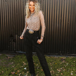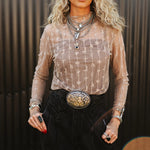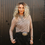 Layer up, darlin’. This long sleeve mesh top is your new ride-or-die for any season. She’s lightweight, breathable, and adds just the right amount of sass to your look. Rock it under a graphic tee, pair it with a strappy tank, or let it shine on its own — either way, you’re servin’ western charm with a modern twist. Perfect for cool nights, sunny days, and every honky-tonk moment in bet