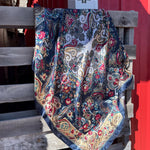 Elevate your style with the Flatland Wild Rag! this timeless piece features rich, detailed floral designs with deep blues, warm golds, and vibrant cranberry reds. Perfect for working on the ranch or wearing out to the dance!