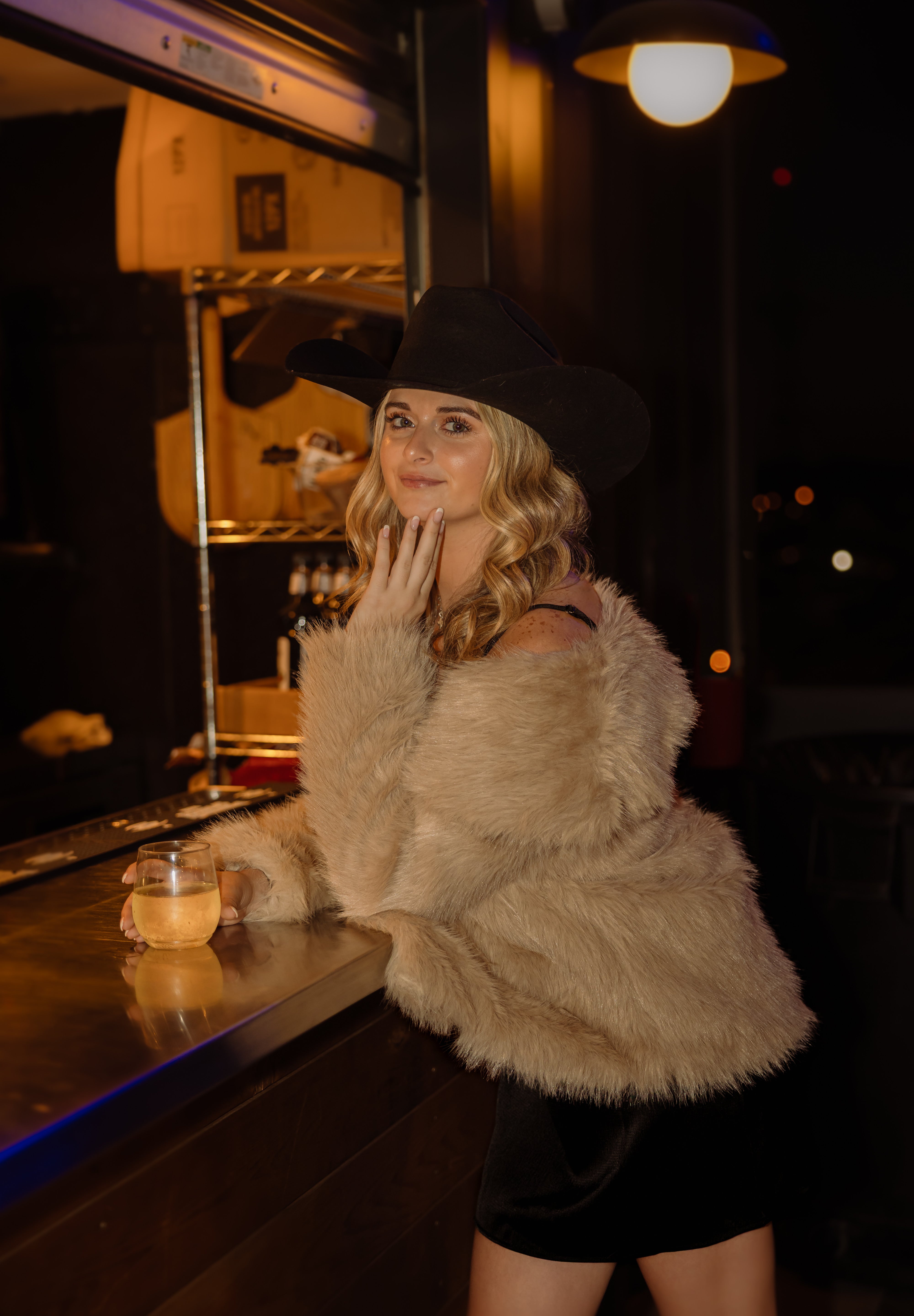 Dripping with retro attitude and untouchable glam, the Boomtown Luxe Coat is a statement in every sense. Its shaggy faux-fur texture and oversized notch collar give you that larger-than-life silhouette — the kind of look that makes the rodeo floor, the Vegas strip, or the dim corner booth feel like your stage.