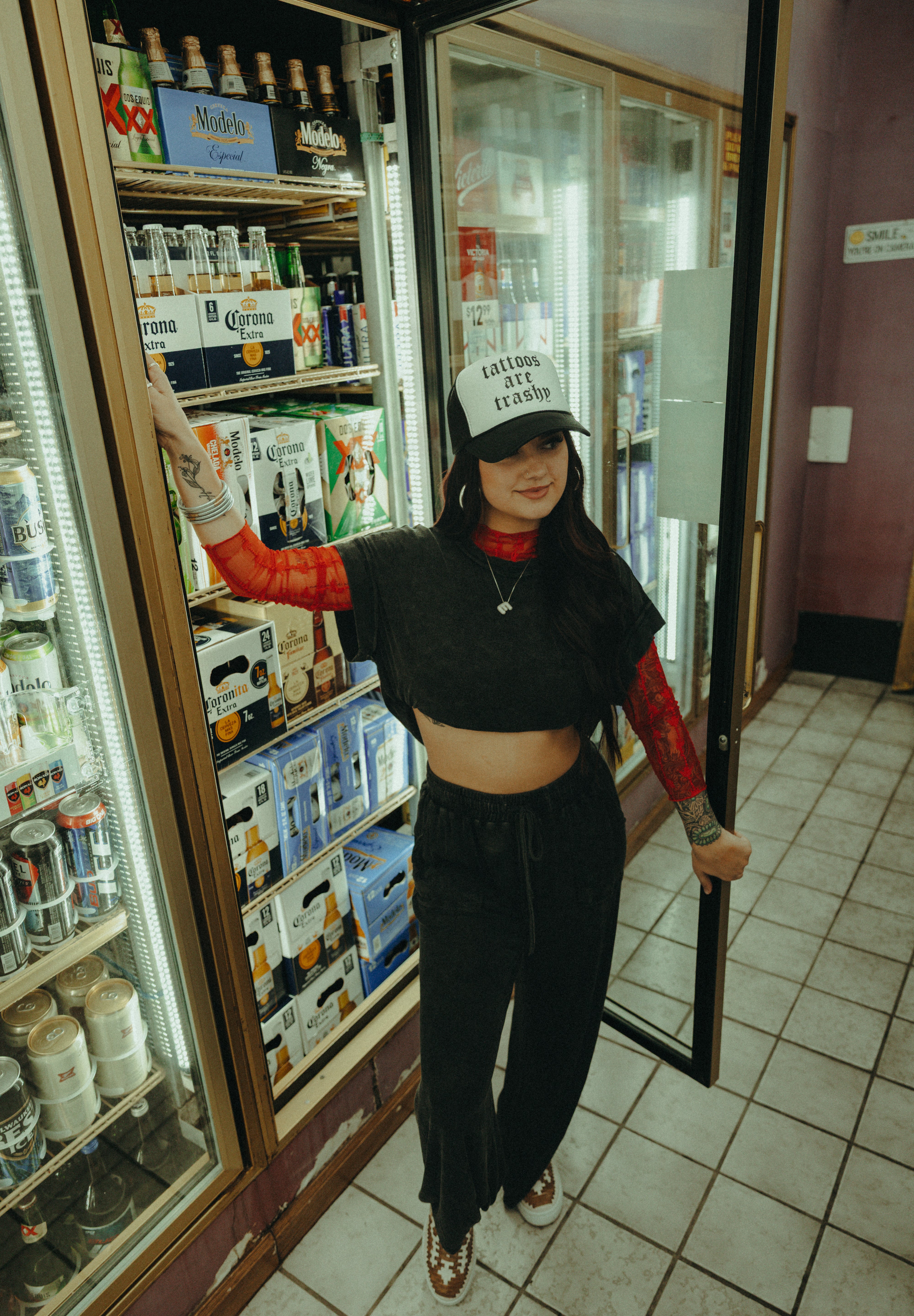 Unwind in style with the Midnight Mineral Lounge Set. This two-piece features a slouchy mineral-washed top with a laid-back drape and wide-leg pants with an easy drawstring waist. Soft, relaxed, and effortlessly cool, it’s the perfect set for lounging at home, hitting the road, or styling up with boots and turquoise for an off-duty Western vibe.