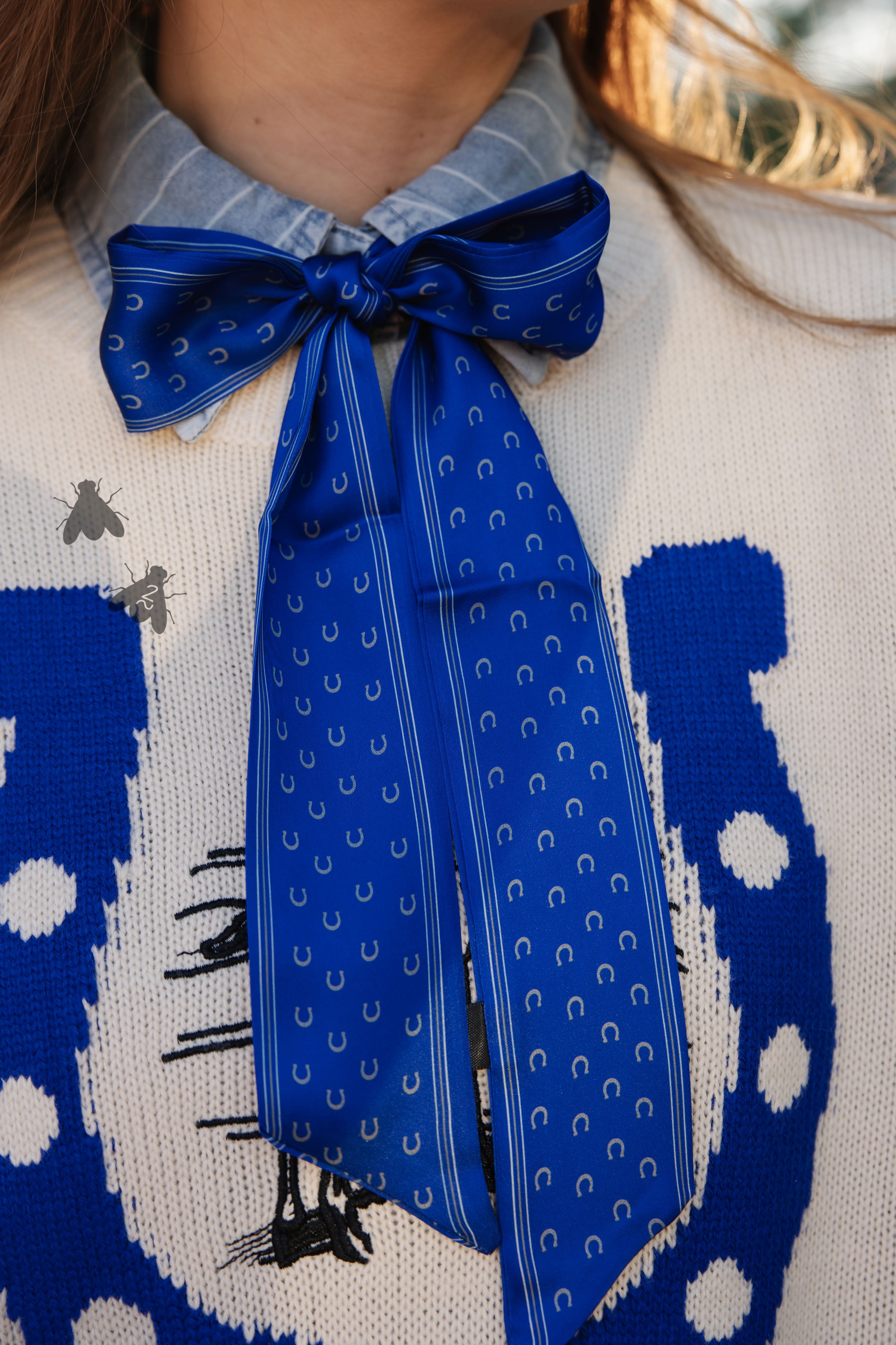 Get the preppy look by pairing it with a collared shirt, tying it in your hair, or giving that LOUIE handbag a Western flare by tying the handles. Again, the options are seriously endless.