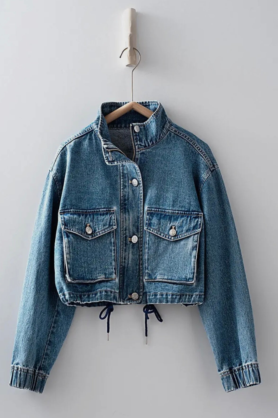 Built for work, made for play — the Ranch Hand Cropped Denim Jacket is the modern cowgirl’s go-to layer. With a boxy cropped fit, stand collar, and utility-inspired flap pockets, this piece blends rugged Western roots with everyday edge. The adjustable drawstring hem lets you shape it your way, while cuffed sleeves keep it laid-back and ready for anything.